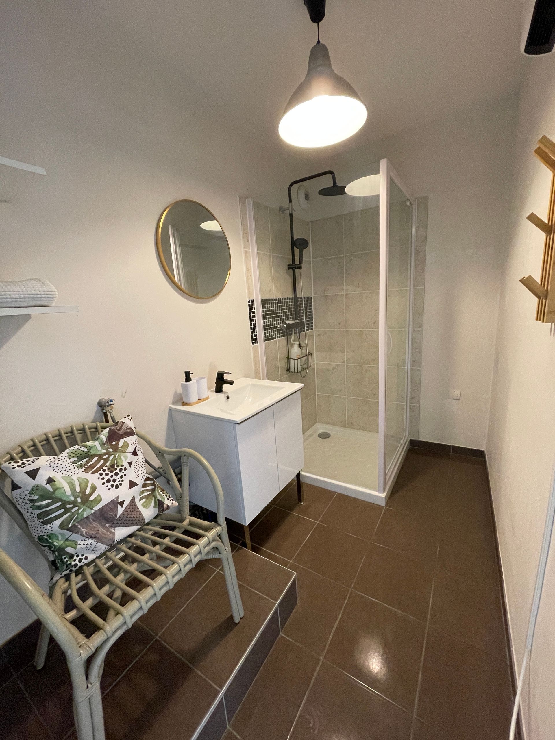 ラ・プティット・ルノディエールのバスルームは、シンプルさと機能性を兼ね備えています。すべてがお客様の快適さを追求してデザインされています。