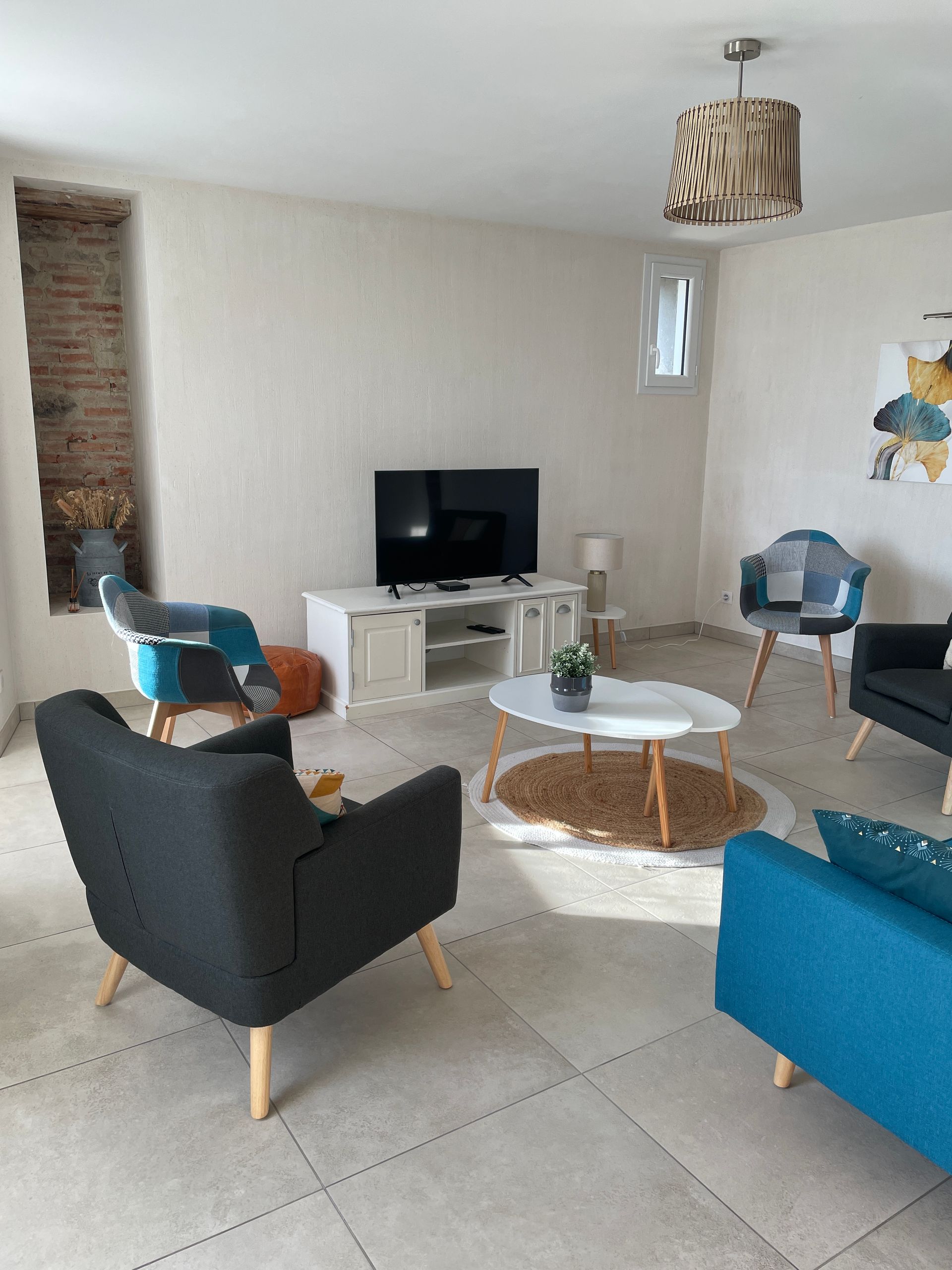 ラ・プティット・ルノディエール・ジートのリビングルームは、中心に位置し、広々として明るい空間で、ゲスト同士が親しみやすく、温かい雰囲気の中で交流できるように設計されています。