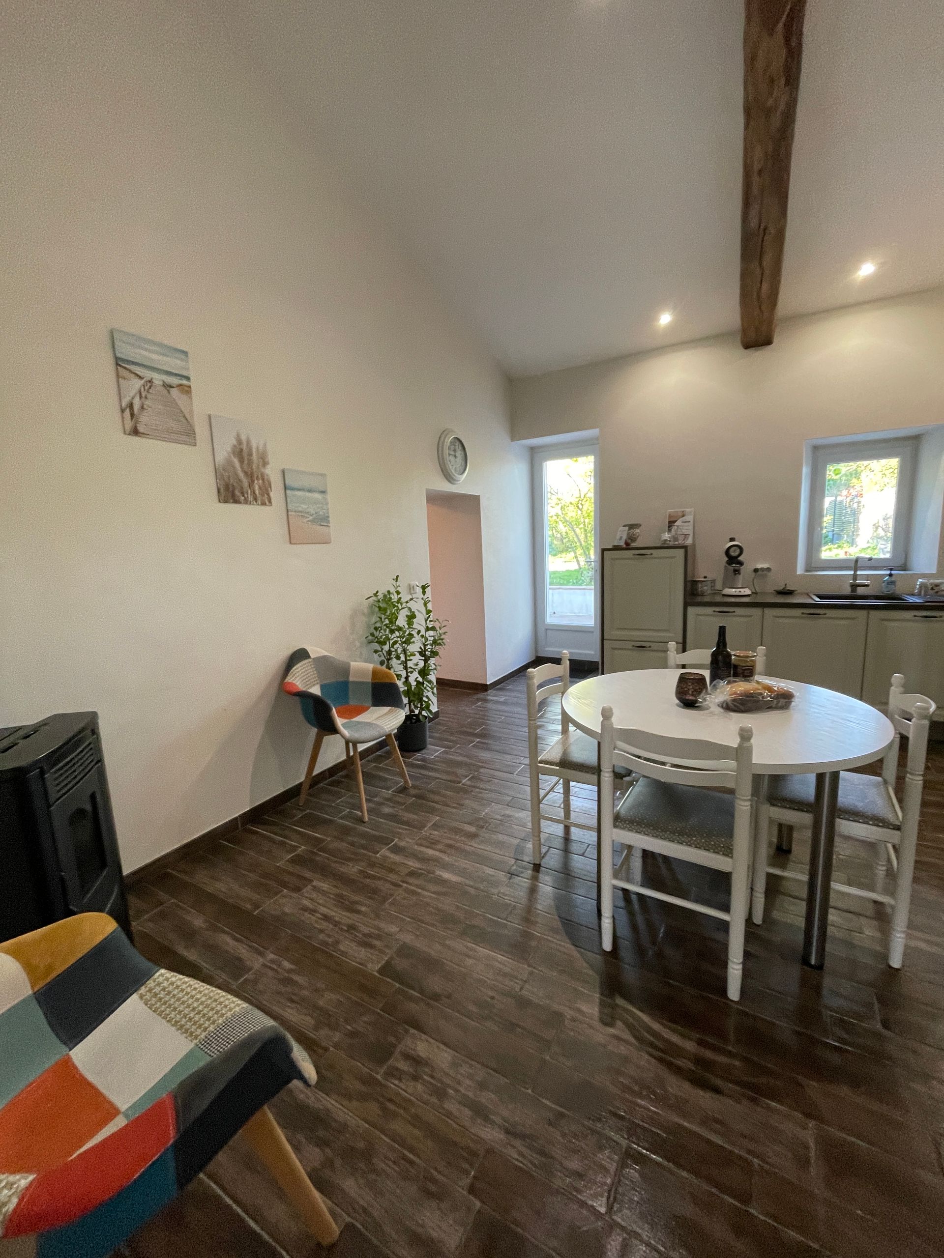 ラ・プティット・ルノディエールのキッチンは、まさに家の中心であり、快適さ、機能性、そして和やかな雰囲気を兼ね備えるように設計されています。広々として明るいキッチンはリビングエリアへと繋がり、家族や友人との交流や楽しいひとときを促します。